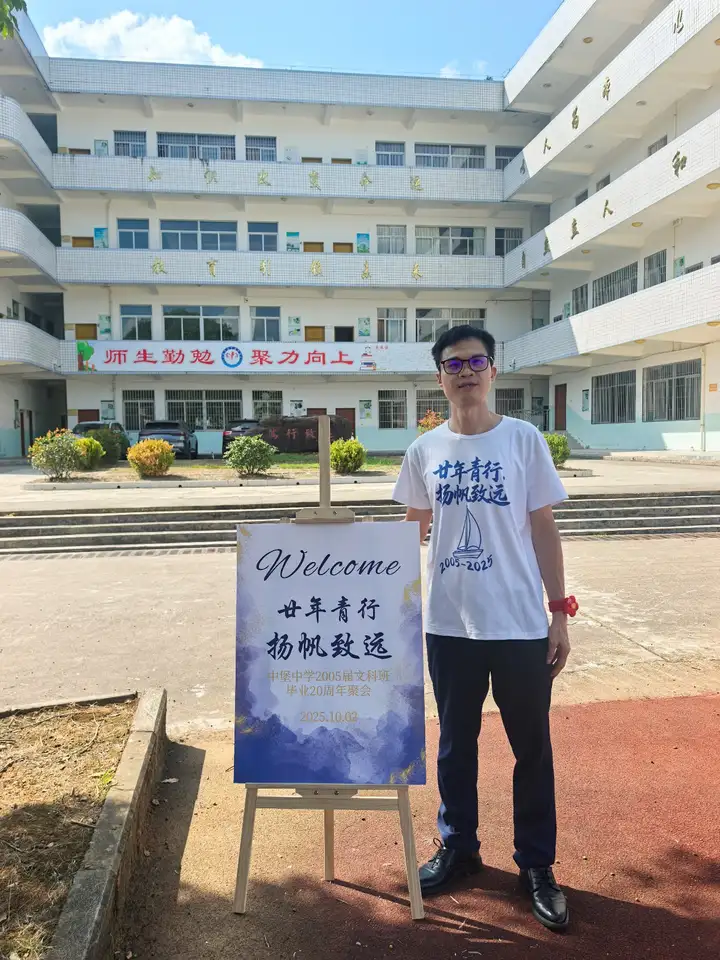 看着眼前一张张褪去青涩却依旧熟悉的笑脸,我仿佛瞬间穿越回二十年前的英语课堂,那时的你们,总在早读课上捧着课本大声朗读课文,有人为了分清“th”的咬舌音反复练习,有人偷偷在课本边缘画卡通小人,被我发现时慌忙用书本挡住;那时的你们,也会在英语作文里写下对未来的憧憬,有人说“想走遍世界,用英语讲述中国故事”,有人说“希望以后能帮家乡的特产通过英语走向海外”。这些细碎的瞬间,像一颗颗明亮的星星,二十年来始终藏在我的记忆里。这二十年,我时常从其他老师、从班级群里听到你们的消息:有人真的成了外贸从业者,用流利的英语打通了国际市场,把家乡的客家特产卖到了国外;有人成了英语老师,像当年的我一样,在讲台上带着学生探索语言的魅力;还有人即便从事与英语无关的工作,也始终保持着学习的热情,用英语看国外的纪录片、读原版书籍。每次听到这些,我都由衷地骄傲——当年课堂上教给你们的不只是单词和语法,更是一扇看世界的窗,而你们真的带着这扇窗,走到了更远的地方。今天重逢,看着你们聊起工作时的从容、说起家庭时的温暖,我更明白:青春最珍贵的不是当时的无忧无虑,而是那段一起为梦想努力的时光,那份藏在“ABC”里的坚持与勇气。它就像英语里的“present”,既是“礼物”,也是“当下”——二十年前的青春是岁月给你们的礼物,而此刻的重逢、未来的每一段旅程,都是值得用心珍惜的“当下”。想送给大家一句我很喜欢的英语谚语:“Keep your face always toward the sunshine, and shadows will fall behind you.” 愿你们永远朝着阳光前行,把过往的遗憾变成成长的养分,把未来的日子过得像当年英语作文里写的那样精彩。也盼着下一个十年、二十年,我们还能回到这里,再聊聊彼此的故事,再看看母校的变化。