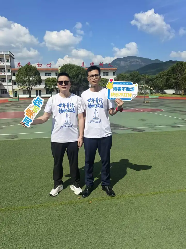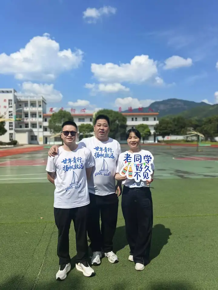 校门口,“廿年青行,扬帆致远”的红幅在秋风中舒展,报到处的定制T恤与纪念礼盒堆叠如帆;那刻在记忆里的红砖教室、虬枝盘曲的老樟树,曾并肩刷题的同窗、执灯引路的恩师,还有那段藏在泛黄试卷与晨读声里的旧时光,都在这一刻静静等候归人。二十载光阴弹指而过。当年攥着高考准考证走出校门的青涩少年,如今已在各自的人生里沉淀出沉稳模样;曾散落天南海北为生活奔波的身影,此刻不约而同奔向母校。这场以“廿年青行,扬帆致远”为名的同学聚会,像一根温柔的线,将散落在岁月里的记忆碎片一一串联,让关于青春的温暖与感动,重新在熟悉的校园里漫溢开来。