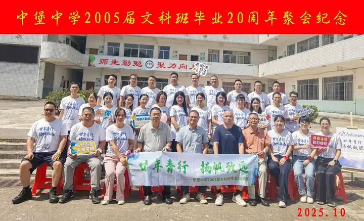 此次聚会,不仅是一次简单的重逢,更是一场青春的回溯与情感的续航。从清晨的校园签到,到座谈会的深情分享;从校园寻踪的美好定格;从午餐的家乡味道,到晚宴的把酒言欢,每一个环节都充满了感动与回忆。而这一切,都离不开筹备组同学的匠心筹备与无私奉献——他们用近一年的付出,为校友们搭建了一个重温青春、续写情谊的平台。此次活动虽已落幕,但情谊永不消散。正如聚会主题“廿年青行,扬帆致远”所言,二十年来,中堡中学2005届文科班的校友们在人生的道路上各自前行,书写着属于自己的精彩;而这场聚会,则让大家暂时停下脚步,重温青春的美好,汲取前行的力量。未来,相信他们将带着这份珍贵的同窗情、师生情,继续在人生的航程中“扬帆致远”,也将永远铭记中堡中学的培育之恩,常回“家”看看——因为这里,有他们最珍贵的青春记忆,有他们永远的“精神原乡”。