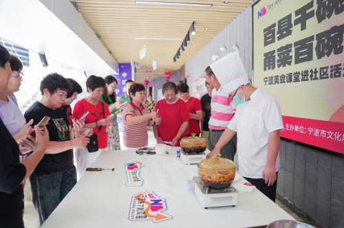 活动现场,美食课堂里香气四溢,非遗工坊内赞叹声此起彼伏,美食品鉴区排起长龙,其中,“百县千碗・甬菜百碗”宁波美食课堂最受青睐 —— 宁波本地资深厨师围绕经典甬菜“油浸带鱼”,带鱼的去腥处理,到汤汁调味的比例把控,进行细致讲解与现场演示。不少市民在品尝完刚出锅的菜肴后表示:“以前总觉得宁波菜的‘鲜’不好拿捏,这次跟着老师学,终于知道关键在食材和火候,回家也能试着做了!”