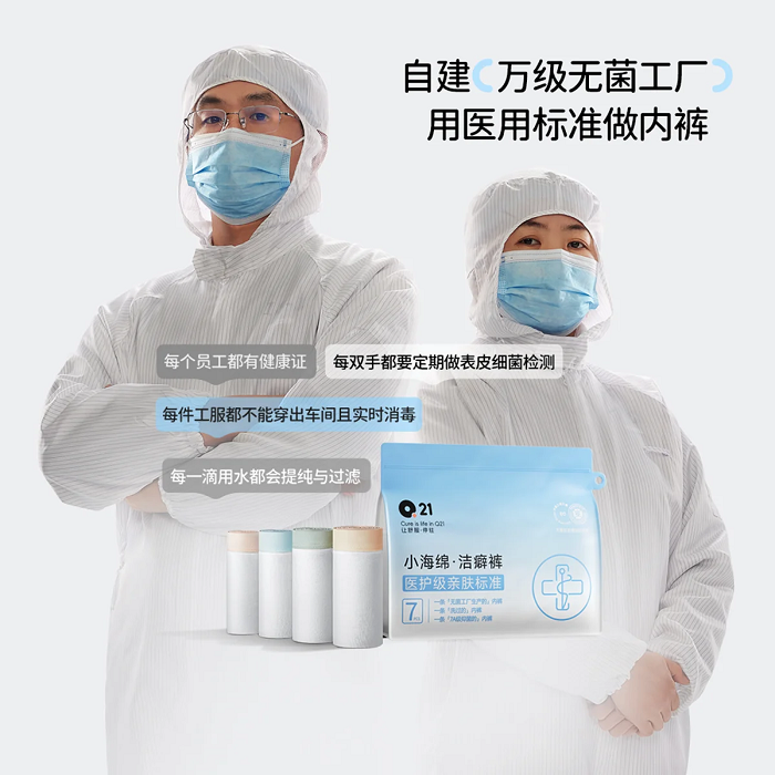 为保障产品品质,Q21在贵州自建医疗级万级无菌工厂生产「洁癖裤」,采用全流程EO灭菌、紫外线消毒及母婴级洗涤工艺,实现从原料到终端的全链路品控。其明星产品「小海绵・净化裤」历经670余天研发,复购率达57%;「小汽水速干T恤」搭载自研面料,具备“1秒导汗、15秒速干”性能,精准回应儿童运动场景需求。