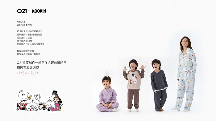 在品牌传播方面,Q21整合“线上+线下+IP联动”多渠道布局,精准触达目标用户。线上通过小红书分享专业面料知识,在抖音联合头部主播展示产品优势;线下于北京、上海、武汉等核心城市设立体验门店,并与阿嘟白泽、MOOMIN等知名IP联名,传递温暖探索的品牌理念,形成用户自传播效应。