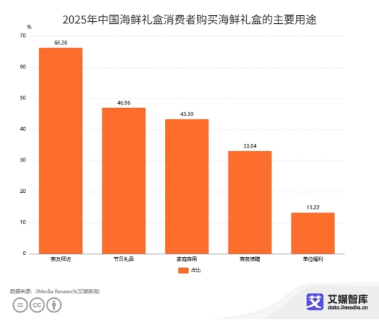 iiMedia Research(艾媒咨询)数据显示,消费者购买海鲜礼盒的主要用途为赠礼。消费者在节日馈赠、商务往来等场景中对高品质海鲜产品的强烈需求,标志着行业从粗放式发展迈向品牌化竞争的新阶段。