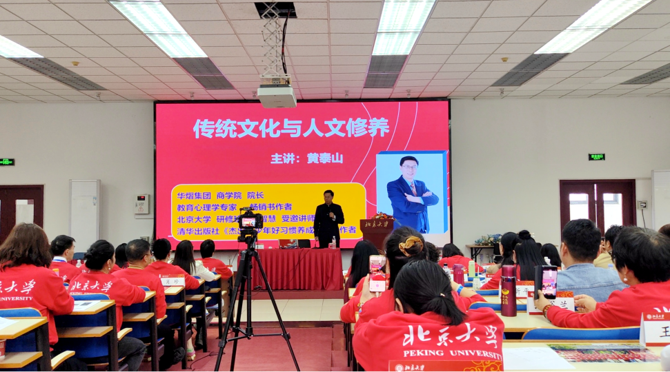 2025年10月15日,知名教育心理学专家黄泰山老师受邀来到北京大学,为“AI领航传统文化与管理创新研修班”的学员们授课,以“传统文化与人文修养”为主题开展专题授课。课堂上,黄老师凭借深厚的文化积淀与生动的讲授风格,将中华优秀传统文化的精髓与当代人文修养培育有机结合,赢得在场学员的热烈好评与高度认可。