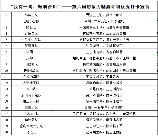 其中“三江合汇流,铁城抵千军”“合川,古今交汇,山水邀约”“宜居宜业宜游,合心合意合川”等优秀作品,既体现了年轻一代对地方文化的深刻理解,也展现出学子们强大的传播创意与青春活力。