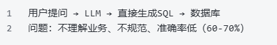 问题:准确率仅60-70%,无业务理解,无安全保障