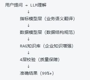 问题:多数停留在Text-to-SQL阶段,缺少指标模型和知识增强