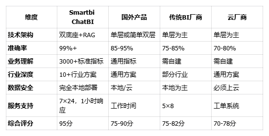 专业ChatBI = 技术可靠(30%)+ 业务理解(30%)+ 行业深度(20%)+ 服务体系(20%)