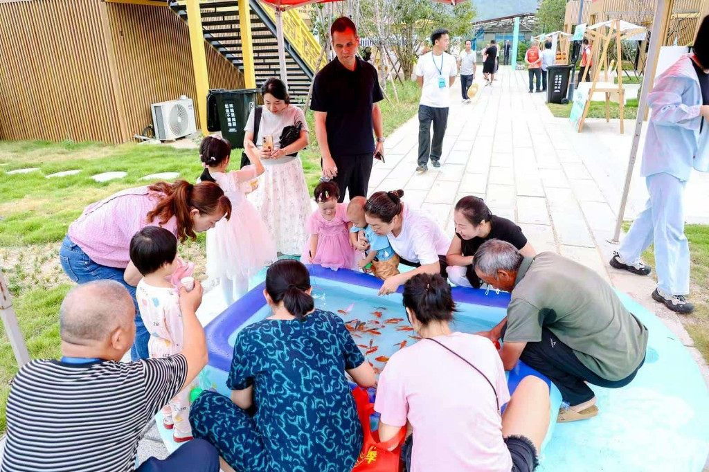 活动现场亮点纷呈。舞蹈表演融入金鱼与丰收元素,点燃全场氛围;金鱼专家、养殖户、企业代表轮番发言,分享产业发展故事;授牌环节表彰乡村振兴先进单位与个人,树立产业发展标杆;“福鱼手印”启动仪式更是将活动推向高潮,象征着闽侯金鱼产业与乡村振兴事业携手共进。此外,养殖知识讲座、有奖问答互动游戏与养殖示范点参观等环节,让嘉宾与群众深度参与,沉浸式感受闽侯金鱼文化魅力与产业实力。