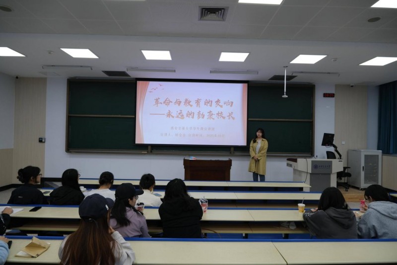 时金金带领大家在回顾历史中筑牢理想信念,在感悟精神力量中凝聚奋进共识。她的宣讲以彭康校长的生平经历为脉络,生动诠释西迁精神的具体内涵,宣讲提及,彭康1930年被捕,但他仍然坚持马克思主义信仰,在狱中带领同志抗争获取读书权,将监狱变成“学习阵地”。1952年任交通大学校长,1955年带队选新校址,近花甲带头举家西迁。在彭康校长的亲自教导下,西安交通大学为国家,尤其是西部建设培养了大批工程技术人员和有杰出贡献的栋梁之材。最后,她号召大家以彭康校长为榜样,把西迁精神融入学习科研与成长实践,用青春行动续写爱国荣校的新篇章,让先辈种下的精神火种在新时代持续发光发热。