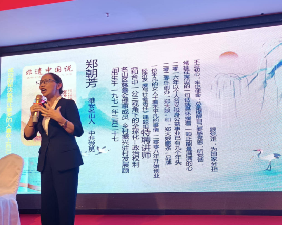 郑大娘藏茶现场介绍自己的企业品牌