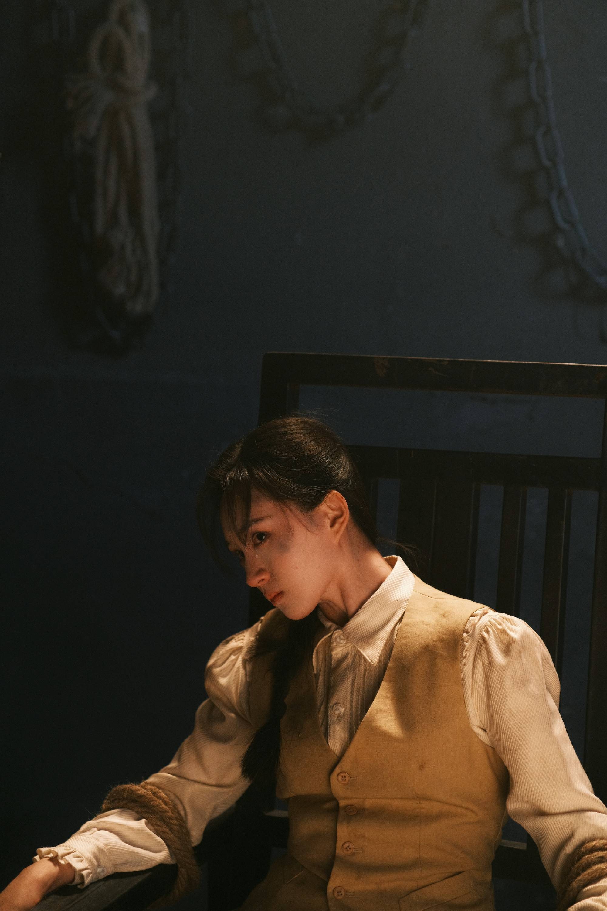 程金铭饰演的白鸽,表面上是乱世中的普通女子,实则是坚定果敢的抗日锄奸团成员。在官方发布的群像海报中,程金铭以两种截然不同的形象出现。一边是落泪的柔情女子,另一边则是不失作战英勇的战士。这种双重性生动展现了她所扮演角色的复杂性与多维性。