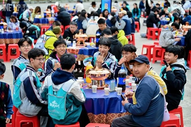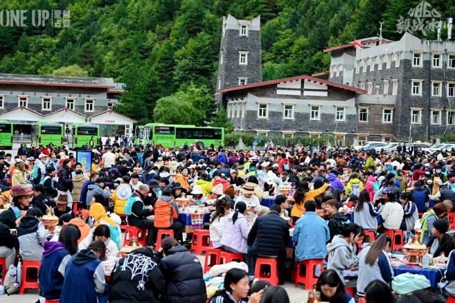 徒步归来,万人藏式土火锅宴在景区入口处暖心开启。铜锅沸腾,歌舞欢腾,游客围坐分享旅途故事,品味地道藏餐。精心设计的开餐仪式与特色表演,不仅暖了胃,更暖了心,让民族风情在烟火气中自然流淌。