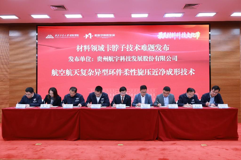 在备受关注的校企合作环节,学院现场向中航重机、万航模锻、西安航天动力机械等 8家平台共建单位授牌,并与油气钻采输送装备全国重点实验室、金轮针布等 12家合作企业签署合作协议。双方将聚焦材料领域“卡脖子”技术难题,携手开展联合攻关,推动产学研深度融合,为国家关键材料技术突破提供支撑。