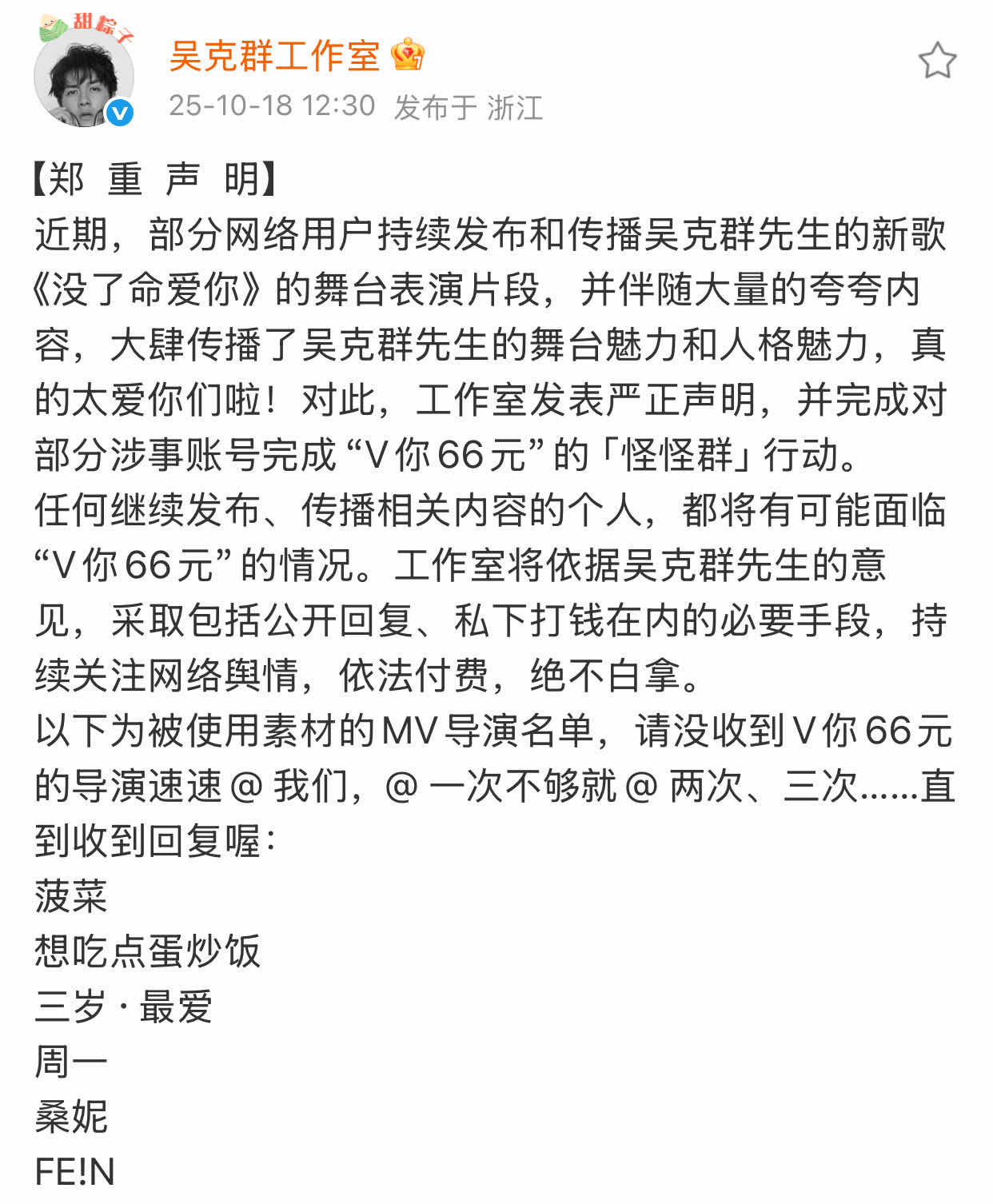 从出道到现在,吴克群似乎一直没变。没有被娱乐圈的功利侵蚀,也不受流量的裹挟,还是那个带着 “笨拙感” 的歌手,愿意 “没了命” 去相信爱。