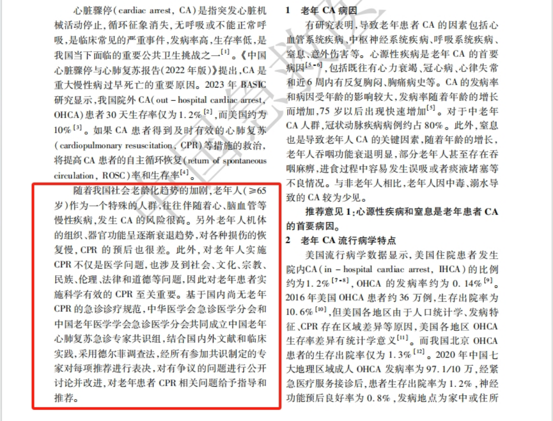 随着我国社会老龄化趋势的加剧,老年人(≥65岁)作为一个特殊的人群,往往伴随着心、脑血管等慢性疾病,发生CA的风险很高。因此,在老年人活动场所科学配置AED,普及急救知识与技能,对提升老年群体的健康保障与应急救治能力具有重要意义。