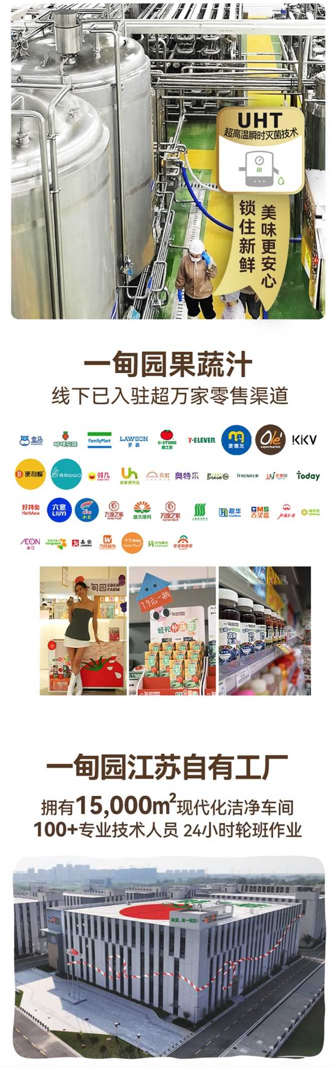 目前,一甸园已覆盖全国超万家零售终端,入驻全家、罗森、7-Eleven、Ole’、KKV、麦德龙、永旺、盒马等主流商超与便利店,打通线上线下消费场景。凭借“源头可溯、工艺透明、国际认证、渠道广布”四大优势,一甸园正以科学营养与真实价值,推动100% NFC番茄汁从“小众尝鲜”走向“大众日常”,成为中国健康饮品升级浪潮中的引领者。