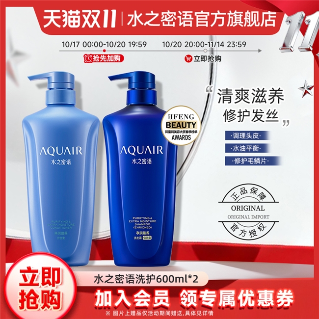 天猫双11现货期间,在kuyura可悠然旗舰店购买水之密语净润臻养洗护600mL*2可享百亿补贴,折扣低至6折。