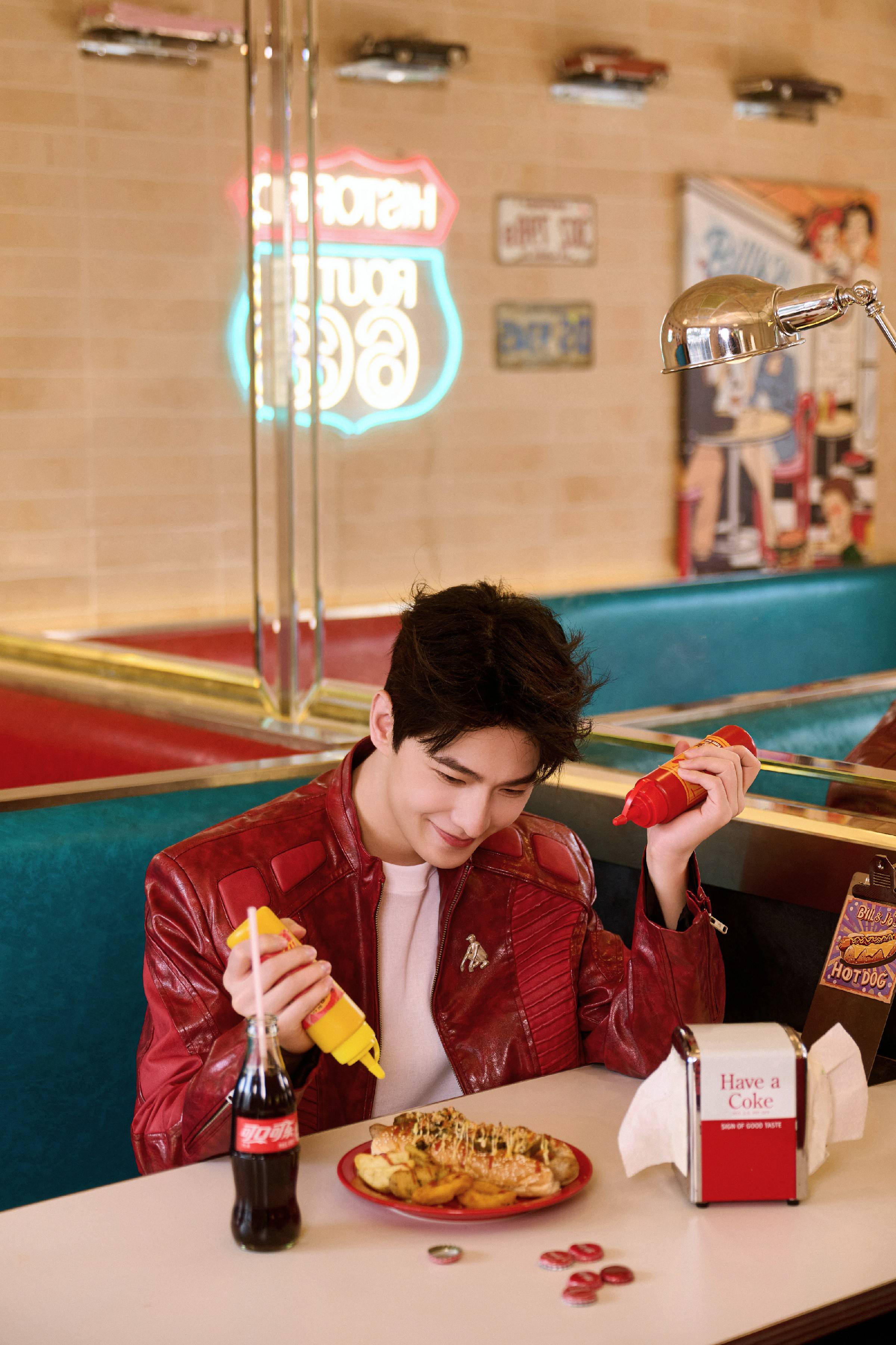 身穿红色皮衣的杨洋,以干净利落的造型展现出明快气质与自在风度。在直播中,他分享了自己的“充乐”方式——运动、聊天、让身心放松,也参与挑战环节,用可口可乐带来轻松与好心情。无论是投入游戏时的专注,还是与观众互动时的笑容,都让人感受到他自然流露的愉悦与亲和。
