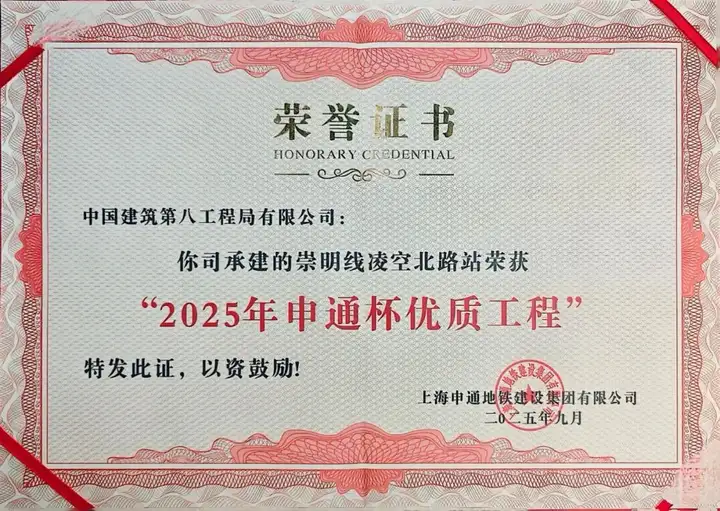 在2025世界工程组织联合会全体大会暨全球工程大会于上海举办的重要契机下,10月16日,上海电视台对中建八局轨道公司上海崇明线项目进行专题报道,向全球展示上海工程建设的硬核实力。此前,该项目凭借“无渗漏”车站建造成果亮相2025年上海市交通建设工程“质量月”活动,成功斩获“2025年申通杯优质工程”奖项。这份沉甸甸的认可和荣誉,既是项目团队精益求精的技术结晶,更是建设者对“百年地铁安全”的庄严践行。
