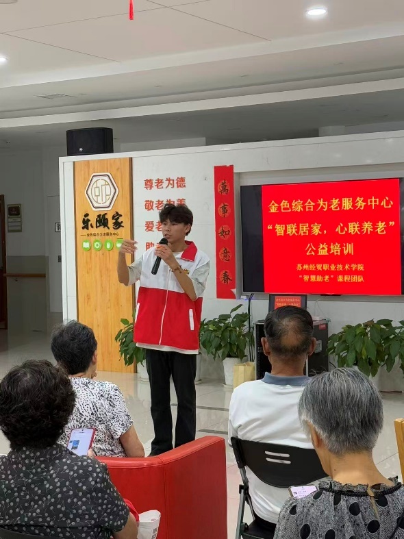 在数字化浪潮席卷生活各个领域的当下,老年群体面临着智能技术带来的 “数字鸿沟”挑战。为帮助社区老人跨越这道鸿沟,享受智能生活的便利与乐趣,同时增强防骗意识,苏州经贸职业技术学院信息技术学院物联网技术应用与网络技术应用专业的老师们,带领“物联网产品研发社”社团学生,依托冯蓉珍教授主持开发的江苏省老年教育课程资源库子库《玩转数智世界 悦享银龄生活》,以及李文娟博士负责开发的教育部“智慧助老”优质课程资源《智联居家,心联养老》,开展了为期 10 天的公益培训活动。目前,该活动在社区内开展得如火如荼,两大公益培训项目如同打开智能世界的钥匙,为老人们搭建起通往智慧生活的桥梁。