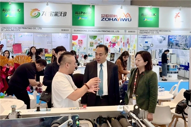 由商务部主办、外贸发展局承办的中国国际包装、印刷、塑料机械及零配件(印尼)展于2025年10月21日在印度尼西亚雅加达开幕。展会与2025年印尼包装、印刷、塑料机械展(All pack Indonesia)同期举办,我局局长刘殿勋、中国驻印尼使馆经商处公使衔参赞李洪伟、印尼工业部下游化工与制药工业司司长索帕尔・哈洛莫安・西拉伊特、印尼食品饮料工业协会主席阿迪・卢克曼、克丽斯塔展览公司首席执行官达乌德・萨利姆等嘉宾出席了展会开幕式,刘殿勋局长代表中方致辞。开幕式结束后,中外嘉宾共同巡视展馆并与参展企业沟通交流。