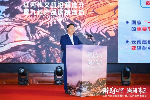 2025年10月20日,红河州文旅招商推介暨九红产品展销活动在广州市成功举办。红河州委书记赵瑞君出席并作主旨推介,云南省政府驻广东办事处主任龙乔忠、中国旅游协会副会长保继刚致辞。粤港澳大湾区知名企业、行业协会、文旅机构及采购商代表等200余人参会。