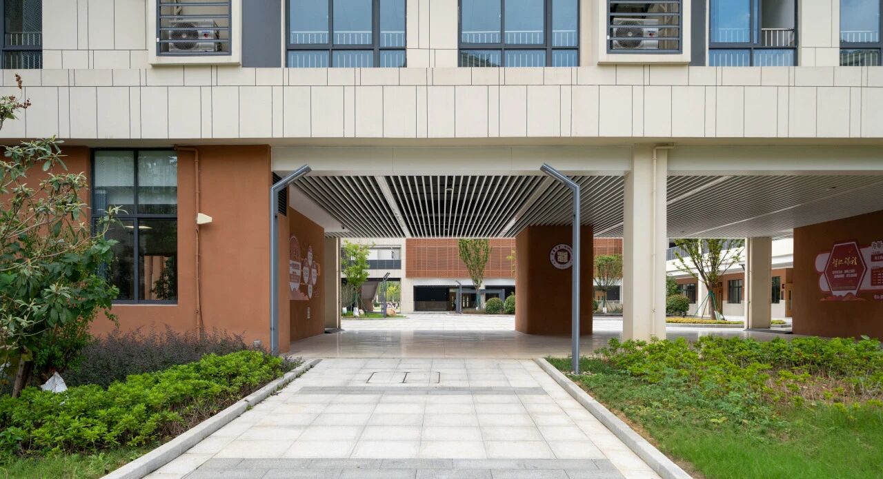 位于操场下方的超万平车库对周边居民长期开放,成为与社会共享的公共停车区。这一设计不仅缓解了接送学高峰时段,校园周边道路拥堵的难题,也部分解决了周边社区居民停车难的问题。地库与校园连通区域通过闸道隔断并进行管理,保障了师生的校内安全。
