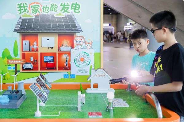 在这里,阳光新能源把光伏电站、风力电站、储能电站等应用场景搬到现场,通过展览展示、体验互动、科普讲堂和专家讲座四大维度构建沉浸式体验。观众既能亲手实践发电原理,还能近距离观察地面、工商业、家庭等不同场景的新能源电站创新案例,深入了解新能源发电的各种知识。