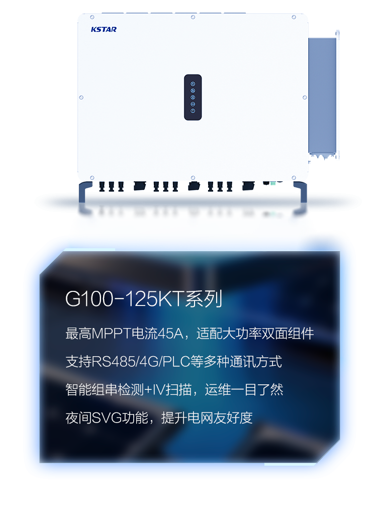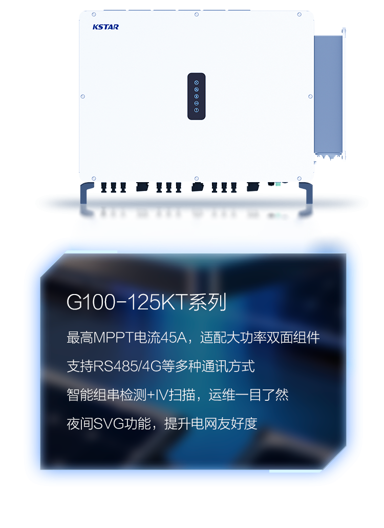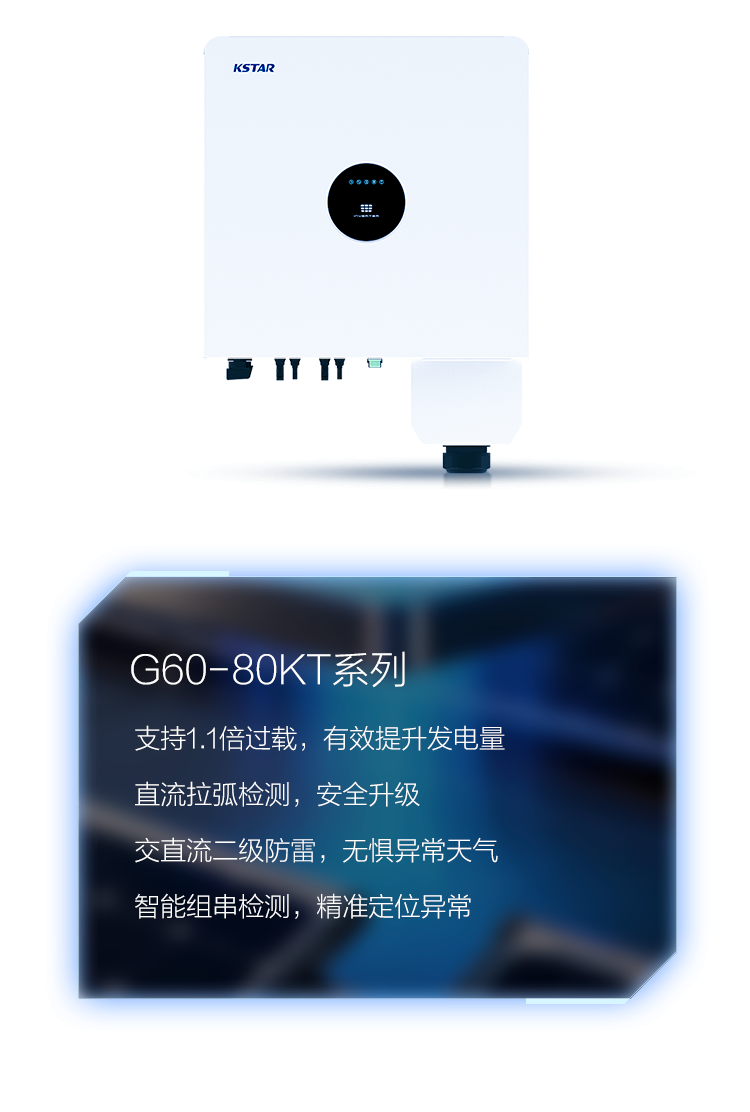 专为分布式工商业屋顶光伏电站设计,G系列逆变器具备智能工作模式,确保系统高效、稳定、安全全时运行。
