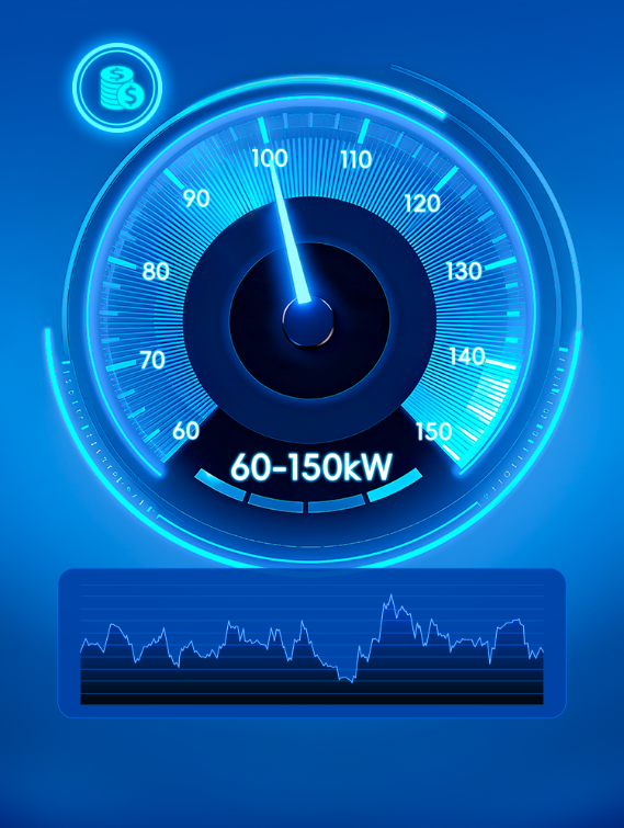 60-150kW全功率段覆盖,精准匹配不同规模的工商业用电需求,提供更优度电成本和投资回报。