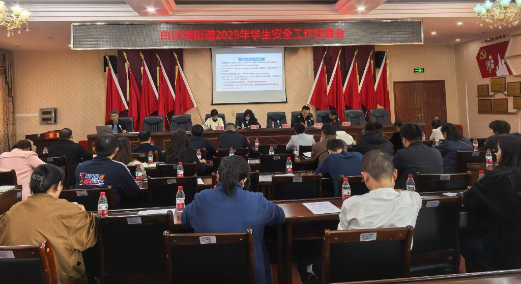 为全面筑牢校园安全防护网,切实保障辖区学生身心健康,10月23日下午,长沙市望城区白沙洲街道办事处组织召开学生安全工作部署会。街道民生事务办、各村(社区)教育专干、市场监督管理所、基层卫生服务中心、各村医务室负责人,以及辖区各学校、幼儿园、培训机构负责人参会,齐聚一堂谋划推进学生安全工作。