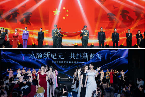 整场活动流程紧凑丰富:从庄严的护旗仪式、专业产品讲座、财富机遇分享,到男模新品走秀、多项优秀代理颁奖(包括优秀团队奖、新锐突破奖、百万业绩奖等)。其中,用户真实反馈的“脸秀”环节大放光彩——从20+至50+不同年龄梯度的妍艾轻用户登台亮相,以素颜之美生动展示产品效果,让与会者直观感受到妍艾轻的护肤实力。