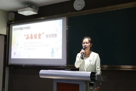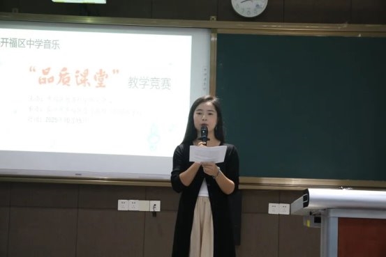 秋意正浓,乐声悠扬。2025年湖南省长沙市开福区中学音乐“品质课堂”教学竞赛日前在长沙市青竹湖湘一外国语学校(以下简称青一)成功举行。本次活动由开福区音乐教研员、特级教师邱小燕组织,汇聚了开福区九位初、高中音乐教师同台竞技,充分展示了开福区音乐教育的先进成果与课堂实践的创新探索。青一作为承办单位,选送该校音乐组青年教师袁晶参赛。本次比赛由青一彭佩老师担任主持人。