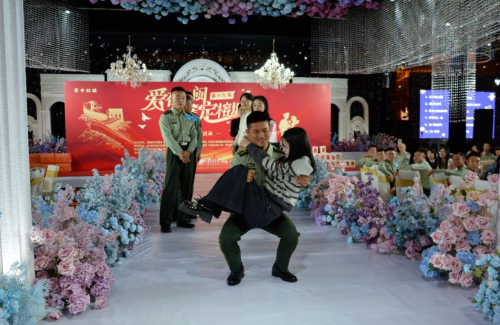 武警某部政治工作部领导在致辞中感谢福建各级党委、政府和爱国拥军组织长期以来对国防和军队建设的关心支持,用心用情用力解决部队官兵的实际问题。部队官兵将牢记使命、不负重托,将地方党委、政府和拥军组织的关心关爱转化为部队建设的强大动力,视驻地为故乡、视人民为亲人,同呼吸、共命运、心连心,共同谱写军地共建、融合发展的新篇章。同时,也希望现场的官兵要从从容容、游刃有余的在轻松的互动中认识彼此,选准目标,大胆争取,不能匆匆忙忙的空手而归。也希望现场的女嘉宾,大胆选择这些政治上可靠的兵哥哥。
