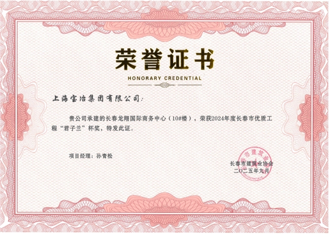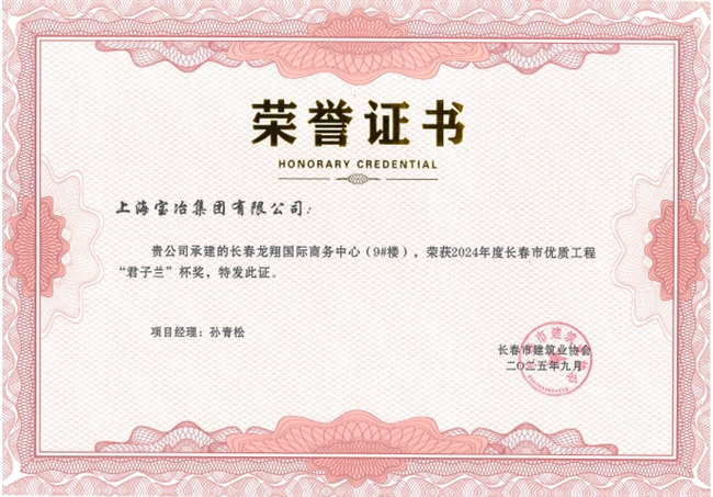 近日,由上海宝冶长春分公司承建的长春龙翔国际商务中心项目在长春市工程建设项目中脱颖而出,其9#楼和10#楼成功斩获长春市“君子兰杯”优质工程奖,以过硬品质彰显了建筑领域的标杆实力。