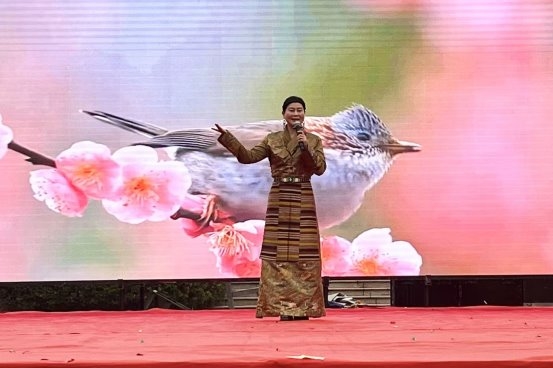 中国著名女歌手奔月以一首高亢激昂的《欢天喜地》点燃了全场的热情,她那嘹亮的歌声和饱满的情感赢得了观众的如潮喝彩。随后,著名民族歌手马余珍以一曲深情的《映山红》感动了在场的每一个人,她那清澈的嗓音和真挚的情感让老人们回忆拉满,现场气氛温馨而感人。