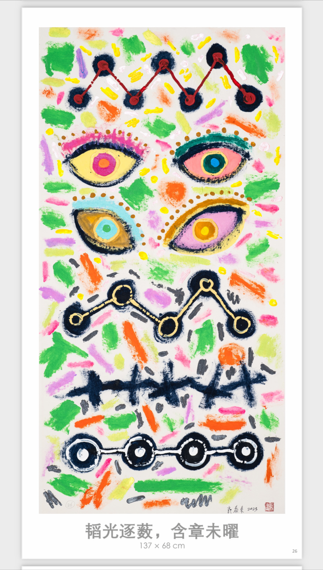 它令古老的卦象与经络在当代视野中重新跃动,使《山海经》之神祇、《易经》之爻变、《黄帝内经》之气机,于色彩流转间达成贯通古今的认知共鸣。此艺术转化非对经典之再现,而是以身为媒、以直觉为径的文化还魂。
