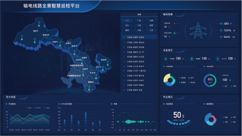 全景监测平台:遵循国网公司输电线路全景监控平台的建设标准,基于江行IDEA平台基础架构,实现对输电线路前端设备的标准化接入、数据分析、全景可视、区域管理、智能巡检等功能。