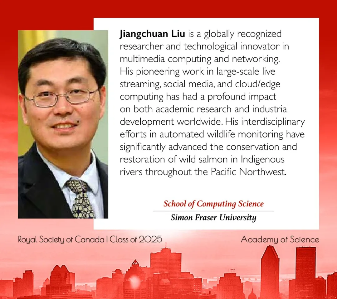 作为在多媒体计算与通信领域享有国际声誉的学者,刘江川院士在大规模实时流媒体、社交媒体与云/边缘计算等方向的开创性研究对学术界和工业界均产生了深远影响。曾于2015年获得加拿大自然科学与工程理事会(NSERC)的国家青年科技最高奖E.W.R. Steacie纪念奖,2017年被评为IEEE Fellow,2019年当选加拿大工程院院士。