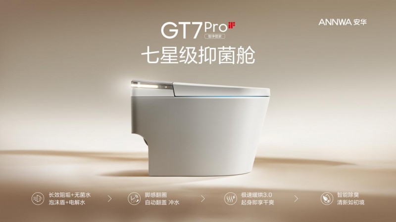 在如厕场景,引领“健康洁净标准”:安华全新推出的GT7Pro智能坐便器,搭载电解水除菌、长效阻垢过滤、无菌水、智控感应泡沫盾与铂金净味科技,实现了节能、省水与全方位健康守护的完美融合,其卓越设计更荣获2025德国iF设计奖,成为行业标杆。