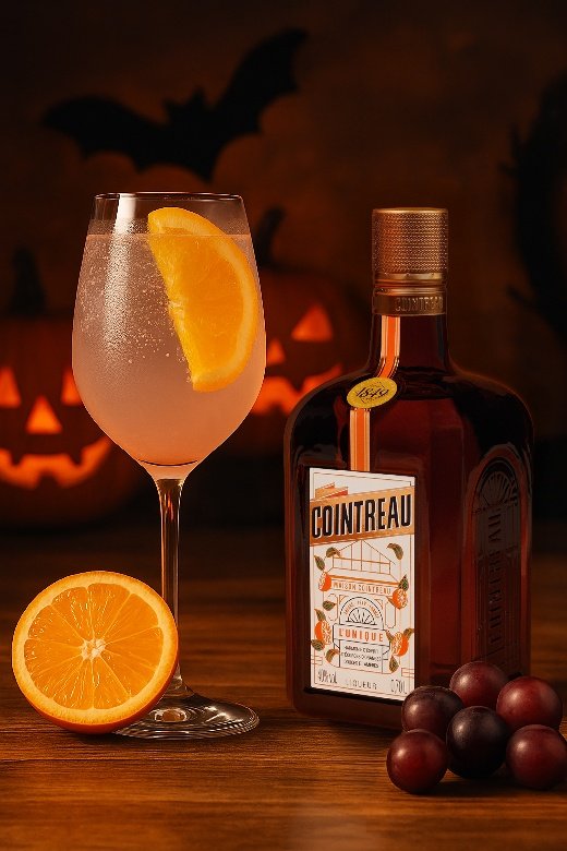 夜幕渐起,万圣节派对的灯光一点点亮起,南瓜灯在角落闪烁,空气里混着糖果的甜香与调皮的笑声。在这一片光影中,“顽皮橙”登场——淡粉色的酒液在冰块间轻轻跃动,橙片浮于杯面,气泡跳跃如顽皮小精灵。橙皮的明快风味与葡萄的甜韵在唇齿间轻盈碰撞,既调皮又俏皮,完美呼应“treat or trick”的节日氛围。