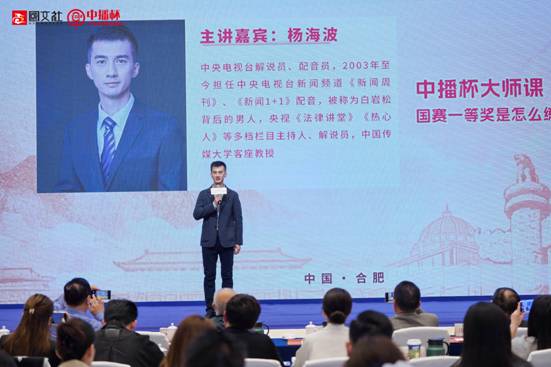 最后,大会进入专业授课环节,为现场学员与机构代表带来满满的“干货”。中央电视台解说员、配音员杨海波结合自己20余年的从业经验,以“新闻配音实战技巧”为主题展开分享。他从最基础的气息控制方法,到如何通过声音传递新闻的情感与立场,再到应对不同题材新闻的配音策略,进行了细致入微的讲解,并不时穿插实例演示,让在场听众快速掌握实用技巧。