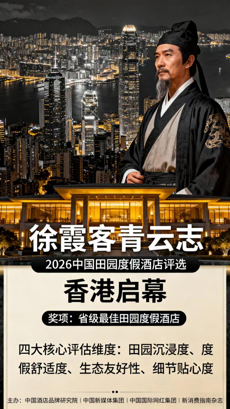 当徐霞客“探索天地”的旅行精神跨越六百年,与当代游客“寻田园诗意、享自然栖居”的核心需求共振,一场重新定义田园度假住宿标准的行业盛会,近日在“亚洲文旅枢纽”香港正式启动。“徐霞客青云志——2026中国田园度假酒店评选”作为中国文旅卓越大奖核心板块,由中国酒店品牌研究院、中国新媒体集团、中国国际网红集团、新消费指南等四大权威机构联合主办、上海秀维文化传媒全程承办,11月15日至12月15日为评选周期,2026年1月初拟举办颁奖盛典,并创新增设“省级最佳田园度假酒店”席位,以“专业评审+游客口碑”双轮驱动,为千万游客筛选真正“融于乡、适于居”的住宿标杆。