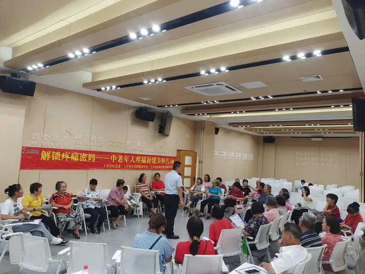 土洋社区民生微实事“解锁疼痛密码 —— 中老年人疼痛舒缓关怀行动” 自启动以来,通过多种形式服务为中老年人破解疼痛难题。近日,中老年人疼痛讨论会顺利举办,30 余名参与过前期活动的中老年人齐聚一堂,分享疼痛缓解心得、反馈服务需求,为此次关怀行动画上圆满句号,也为后续疼痛服务优化指明方向。