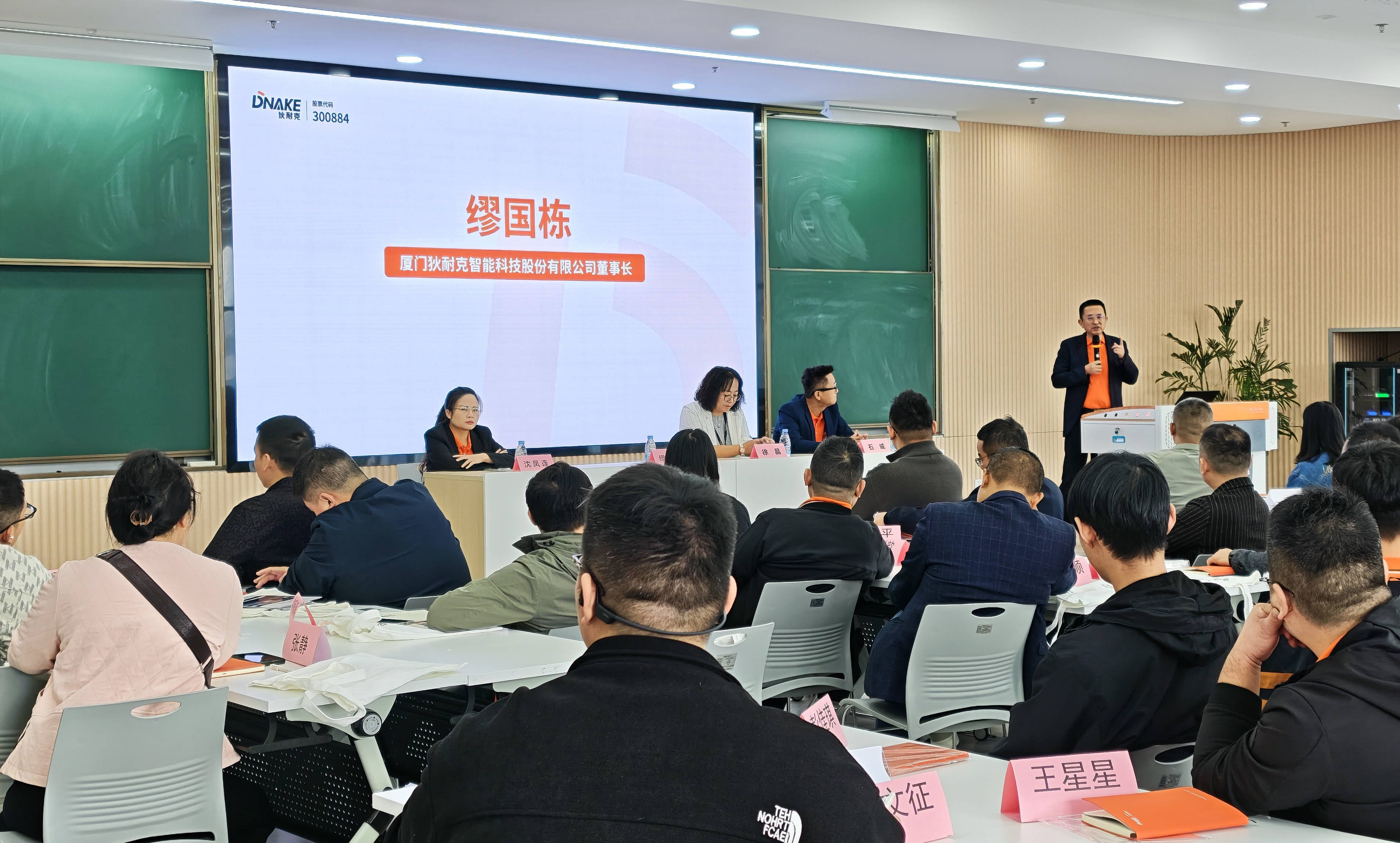 迎新交流会上,厦门狄耐克智能科技股份有限公司董事长缪国栋、小米产教融合基地总经理徐晶、狄耐克智能家居事业部负责人沈凤连、狄耐克智能家居事业部C端渠道负责人石威等领导嘉宾出席并致辞。