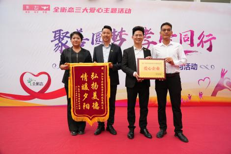 随后,活动迎来了充满温情的物资捐赠与荣誉授予环节。莫里龙董事长代表全衡态向春湾敬老院捐赠爱心物资,敬老院两位院长共同上台接收,这份沉甸甸的物资里,装满了全衡态对长辈们的牵挂。为感谢全衡态的善举,春湾副镇长向莫董颁发爱心企业牌匾,院长则向杨柏茂常务总经理赠送锦旗,这既是对全衡态社会责任的肯定,更是政企携手践行孝爱的有力见证。