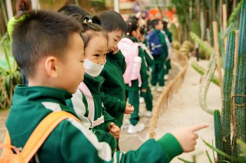 农科馆内的“自然美学课”成为美育实践的生动课堂。孩子们在沙漠植物区与雨林植物区对比观察不同植被的形态特征,收集银杏叶、枫叶等秋日植物标本,随后开展“筝舞蓝天”创作。在导师指导下,大家将植物轮廓与诗词书法相结合,制作出独特的田园主题艺术品,直观感受自然与人文交融的美学魅力。