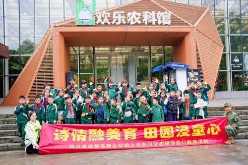 2025年10月29日,四川省成都高新区实验小学新川分校的师生们前往黄龙溪欢乐田园开展主题研学旅行活动。本次活动以“诗情融美育 田园浸童心”为核心,将自然观察、传统文化与艺术创作融入田园体验,让孩子们在行走的课堂中收获成长。