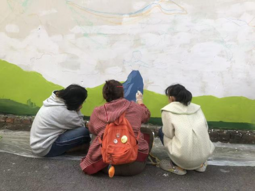 作为双方的“二次协作”,此次活动从筹备阶段便显现出“默契感”。早在活动前一周,小荷花青少年绿色公益发展中心陈主任就与复江道社区取得沟通,以确定待绘墙面位置,为活动顺利进行打下扎实基础。